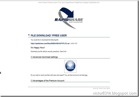 破解、白金帳號都不用! 答案就是這個東西! HappyHour,應該不少人都看過吧? HappyHour就是他們主機對你連接來源區域的負載不高的時候會開發免驗證碼、不限速的下載,實測大概每秒1.5MB左右吧,甚麼不限速也是部分唬爛的...人家從微軟下載更新就可以跑到2MB/s ... 不過夠快了! (個人還是喜歡BDG,不用挑時間隨時都是免驗證碼平均速度900KB/s~1.2MB/s)
